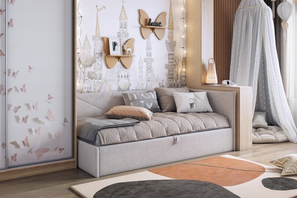 Мягкое изголовье и боковина кровати-тахты обеспечат комфорт и безопасность для вашего ребенка и для вас.