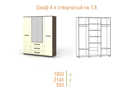 Шкаф 4-х створчатый 1800 Инфинити (SM Мебель)