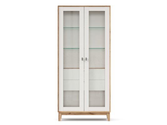 • За сборными распашными дверями со стеклом две стационарные горизонтальные перегородки и две съемные стеклополки.
