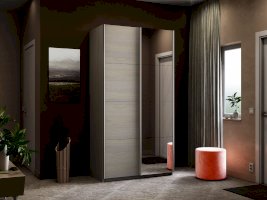 Серия «Прайм» отличается доступностью и функциональностью Навесные двери и лаконичная отделка фасадов создают прогрессивный дизайн. Подойдет тем, кто любит компактную и изящную мебель. Алюминиевые ручки и верхний ходовой профиль обеспечивают легкость и прочность конструкции. Многолетняя безупречная работа благодаря высококачественной немецкой фурнитуре Hettich. Прочная ПВХ-кромка толщиной до 1 мм защищает края от сколов и повреждений. Плавный ход дверей обеспечивает надежная система Hettich Top Line M. Дополнительно можно установить доводчики. Снаружи нет заглушек и винтов благодаря стяжечной системе крепления полок на флипперах, а корпус усилен эксцентриковыми стяжками. Навесные двери скрывают раздвижной механизм от глаз. Они надежно удерживаются в направляющих и не соскакивают. Каждая дверь поделена на 4 секции Секции расставляются в произвольном порядке, создавая новый дизайн фасада.