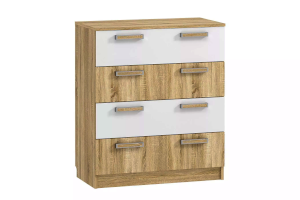 Комод «Фанк» - идеально подходит для обустройства комнаты подростка. Светлые тона мебели, выдержанный стиль прекрасно смотрятся в любом интерьере. Четыре удобных выдвижных ящика – это огромный объем для хранения белья, предметов одежды и аксессуаров. Выдвижные ящики оснащены шариковыми направляющими полного выдвижения, равномерно распределяют вес содержимого и обеспечивают плавный бесшумный ход ящика. Комод отлично сочетается с другими моделями коллекции «Фанк».