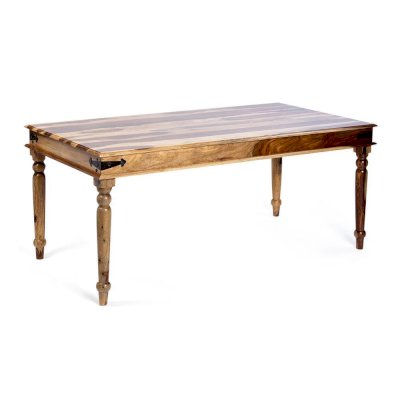 Большой обеденный стол из коллекции BOMBAY, выполненный из массива палисандра, не только задаст тон вашему интерьеру, но и добавит уюта и комфорта месту, где можно приятно провести время с семьей и друзьями. Качественная ручная работа, элегантные резные ножки, винтажная фурнитура из черного металла и разнообразие уникальных оттенков древесины палисандра создают неповторимый облик изделия. Размеры стола позволяют с удобством разместить от шести до восьми человек. Массив палисандра, обработанный прозрачным лаком, обладает повышенной прочностью, долговечностью, не требует специального ухода и будет долгое время радовать вас своим первоначальным видом. Стол отлично гармонирует с мебелью из коллекции BOMBAY, поставляется в разобранном виде.