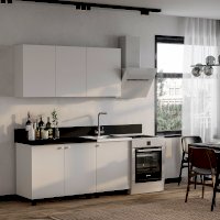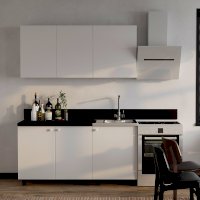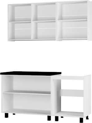 «Куба» - это компактная современная кухня с лаконичным дизайном. Контрастное сочетание белых фасадов и столешницы, декорированной под черный мрамор, сделает вашу кухню яркой и стильной. Прямые строгие линии данной модели, а также отсутствие лишних деталей позволят создать гармоничное и уютное пространство.