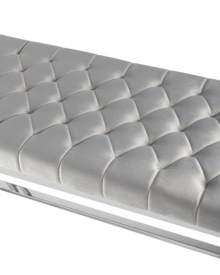 Обивка сиденья выполнена из мягкого велюра - приятного на ощупь, износостойкого и простого в уходе материала. Декорирована каретной стяжкой, которая обладает не только эстетическими свойствами, благодаря такой строчке ткань меньше растягивается и деформируется в процессе эксплуатации.