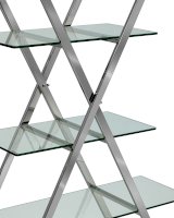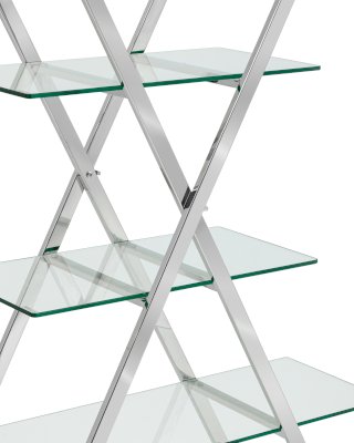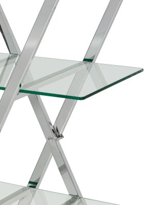 Стеллаж Гейт внесет особый стильный акцент в пространство современного интерьера. Оригинальная открытая конструкция стального каркаса мгновенно притягивает взгляд и оживляет обстановку. На стеклянных полках можно хранить необходимые, часто используемые вещи, предметы декора создадут дополнительный уют.