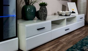 Модульная система Йорк позволяет подобрать тумбу для ТВ индивидуально, исходя из Ваших предпочтений, размеров телевизора и гостиной. Тумба оснащена всем необходимым для удобства использования, выдвижными ящиками на телескопических направляющих, открытыми и закрытыми полками для медиа техники, пультов и других необходимых вещей. Выполнена из экологически безопасных материалов.