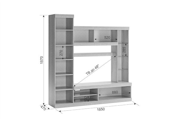 • Макси Мини-стенка (ШхВхГ): 1850х1870х470 мм