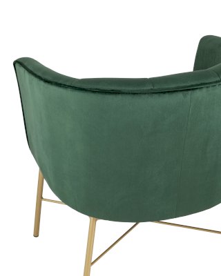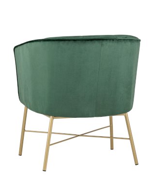 Современное кресло с подлокотниками и металлическими ножками. Обивка выполнена из прочного и износостойкого велюра. Широкая спинка, переходящая в подлокотники высотой 70 см от пола, и мягкое сиденье обеспечивает удобную посадку и уют. Украшает кресло декор на внутренней стороне спинки и металлический каркас в золотом цвете.