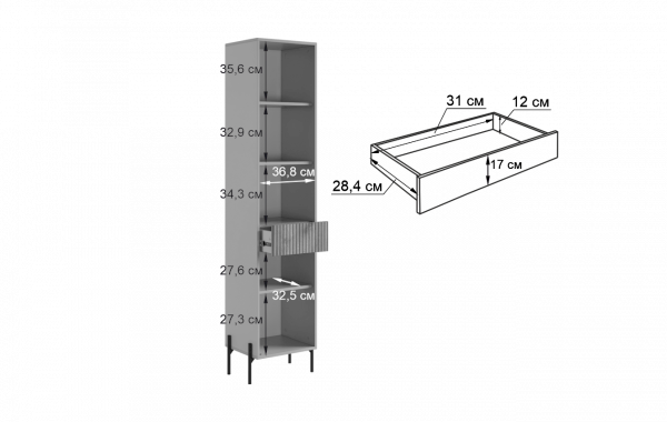 Размеры узкая