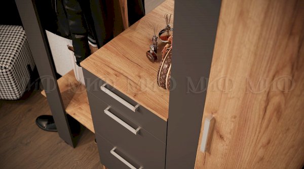 Модульная прихожая Мартина Графит/Дуб крафт (Миф) - за 13 656 руб. в Смоленске. Купите на сайте mebelmarket-smolensk.ru или по телефону 8(800)505-30-63 уже сегодня! Уточнить наличие, комплектацию, актуальную цену можно бесплатно у менеджера ежедневно. Закажите Модульная прихожая Мартина Графит/Дуб крафт (Миф) до конца акции! Доступна покупка в кредит, рассрочку. Доставим со склада или на заказ.