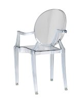 Дизайнерский стул Victoria Ghost изготовлен из поликарбоната. Экологически чистый и долговечный материал обладает хорошей прочностью, термостойкостью и малым весом. Стул Victoria Ghost переживет не одно десятилетие, сохранив свои качества и красоту. Высокая спинка, просторное сиденье и подлокотники обеспечивают комфортную посадку. Современное дизайнерское решение в виде отсутствия цвета позволяет вписать стул в любой интерьер, не перегружая пространство. Несмотря на хрупкий внешний вид, стул Victoria выдерживает нагрузку в 150 кг.