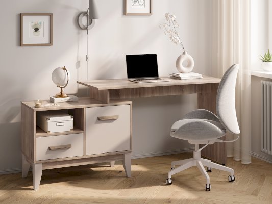 Письменный стол «Скандика» ПС-02 - это универсальное решение для дома и офиса. Данная модель оснащена удобной рабочей поверхностью, на которой можно разместить ноутбук, лампу и рабочие инструменты. Помимо рабочей поверхности также имеется встроенная тумба, которая состоит из просторного отсека за дверцей, ящика и одной открытой полки. Благодаря компактным размерам стол легко уместится даже в небольшой комнате. Створка плотно фиксируется на магнитах.