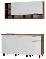 Кухня «Вика» - это не просто кухонный гарнитур, а единая концепция, объединяющая в себе стиль, компактность и вместительность. Белые фасады визуально увеличивают пространство и наполняют его светом. Верхняя часть кухни «Вика» представляет собой сочетание открытых и закрытых полок разного размера, которые подойдут для хранения кухонных девайсов и небольших предметов для готовки.