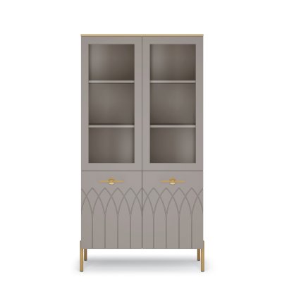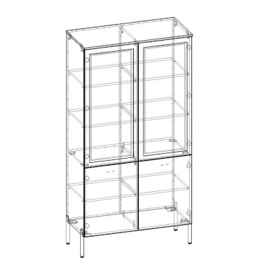 Шкаф-витрина имеет четыре отделения, два из них со стеклодверками для открытого хранения. Разместив здесь красивую посуду и сувениры – вы сможете украсить интерьер вашего дома.