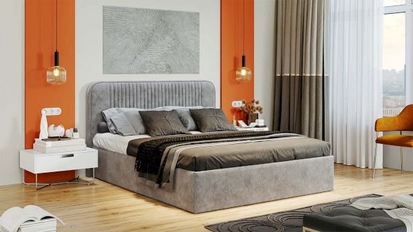 Каркас кровати усилен поперечной и продольной опорами, что гарантирует максимальную устойчивость конструкции. Важной и функциональной деталью также является возможность рационального хранения, поэтому кровать оборудована подъемным механизмом, обеспечивающим верхнюю фиксацию и удобный доступ к месту для хранения.