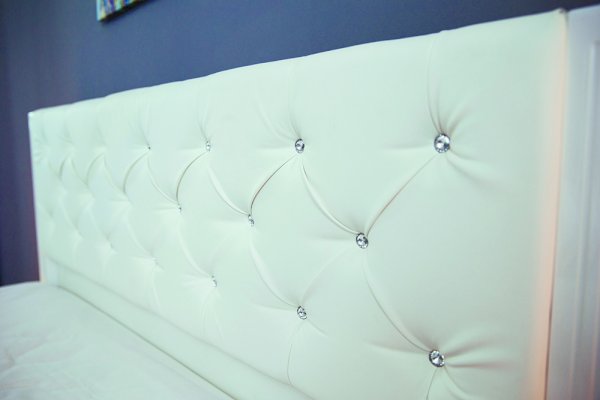 Материал изголовья: Матовая экокожа с каретной стяжкой со стразами из стекла/акрила